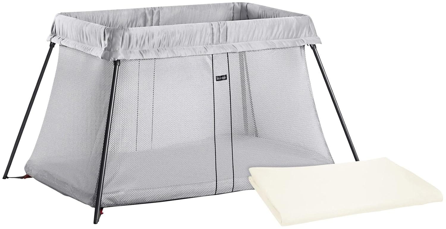 Although this travel crib is a bit expensive, I like it! It's very lightweight and folds neatly into a travel case. It's easy to pack, and the case protects the crib from getting dirty in transit. I found the setup easy. You could even do it one-handed, and only one adult is needed. The mattress seems comfy, and it's not crinkly when the baby rolls around. The materials are premium and it's decently non-toxic.